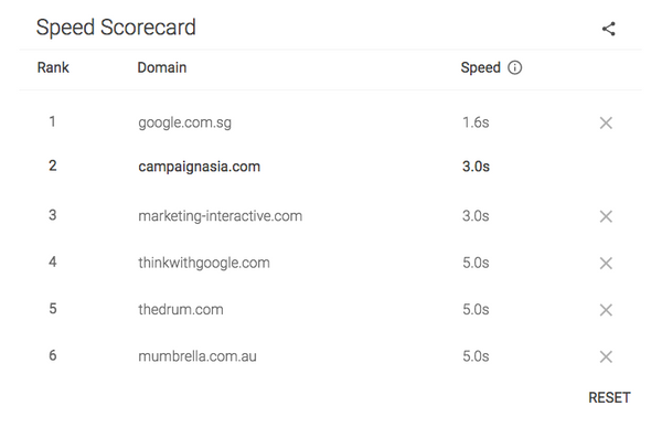Capable of analyzing over 1000 websites across 12 countries, the Speed Scorecard tool allows advertisers and agencies to compare mobile pages against up to 10 competitors.