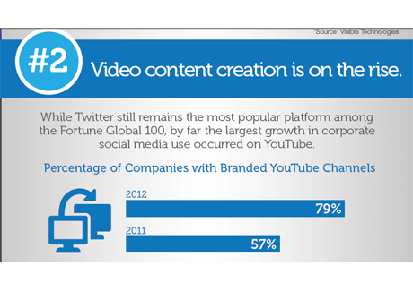 SYDNEY - Over the past year, the number of Fortune Global 100 companies with a branded YouTube channel has jumped from 57 per cent in 2011 to 79 per cent, according to a study by Burson-Marsteller.