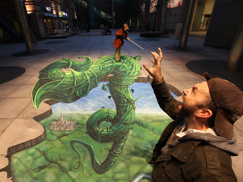 Residents of Tokyo this week may be surprised to encounter a beanstalk bursting out of the pavement. This example of 3D street art, believed to be the first in Japan, was created by a UK company called 3D Joe and Max to promote the Warner Bros. film "Jack the Giant Slayer", which opens in Japan next week. The company has created similar work—and garnered massive amounts of earned media coverage—for clients including Visit Britain, Reebok, Sprite and Disney Pixar.
