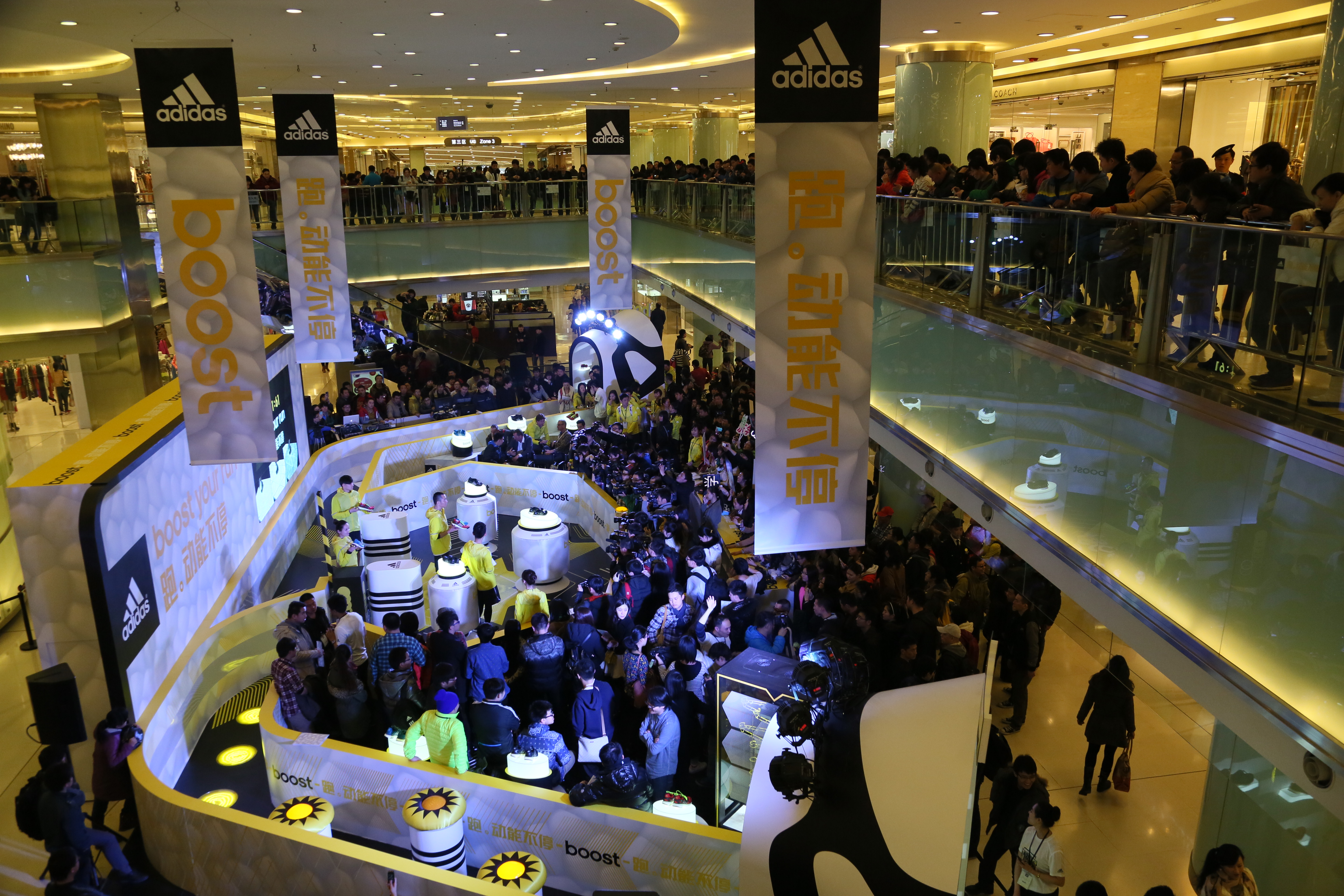 On 2 and 3 March, adidas introduced its latest Energy Boost shoe to China through a human pinball game, inaugurated by brand ambassadors Li Dongxue and Liu Xudan. The event aimed to demonstrate the core strengths of the product—innovation, fun and urban style—as well as performance benefits that have been contradictory in the past: soft cushioning and responsiveness.