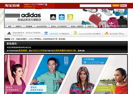 Adidas sets up store at Taobao Mall in China