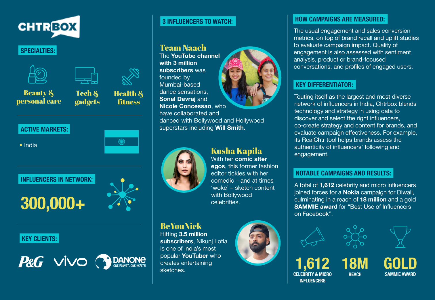 Learn about Chtrbox, one of the largest and diverse influencer networks in India. Our infographic feature, 'Circle of Influencers', breaks down 11 APAC KOL networks.