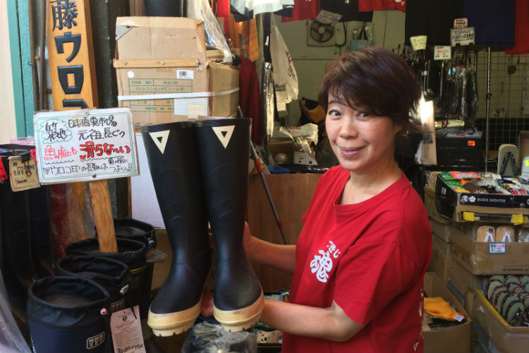 “Tsukiji people’s spirit won’t change,” said Kanako Ito, the proprietor of a shop specialising in rubber boots, who described Tsukiji as her “second family”. Her shop, which is relocating, also sells T-shirts bearing the ‘Tsukiji Damashi’ logo. “Although the building will be new, the people will move so it will remain the same… It will just take some time to develop some atmosphere there.”