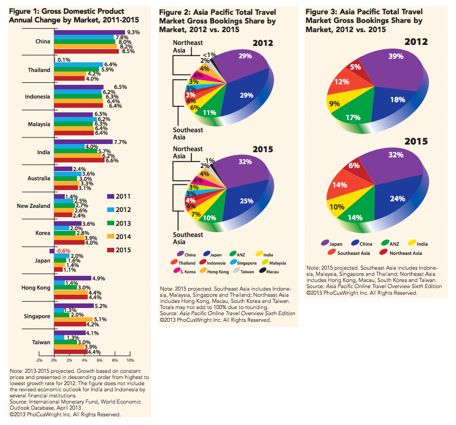 The PhocusWright study also revealed projected growth figures for countries within the Asia-Pacific region over the next three years, showing China and Japan as leaders.