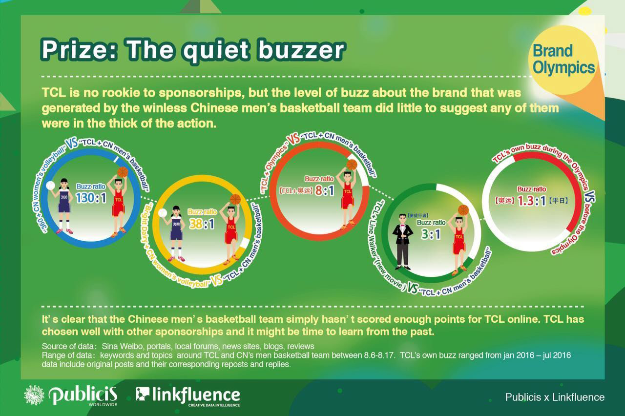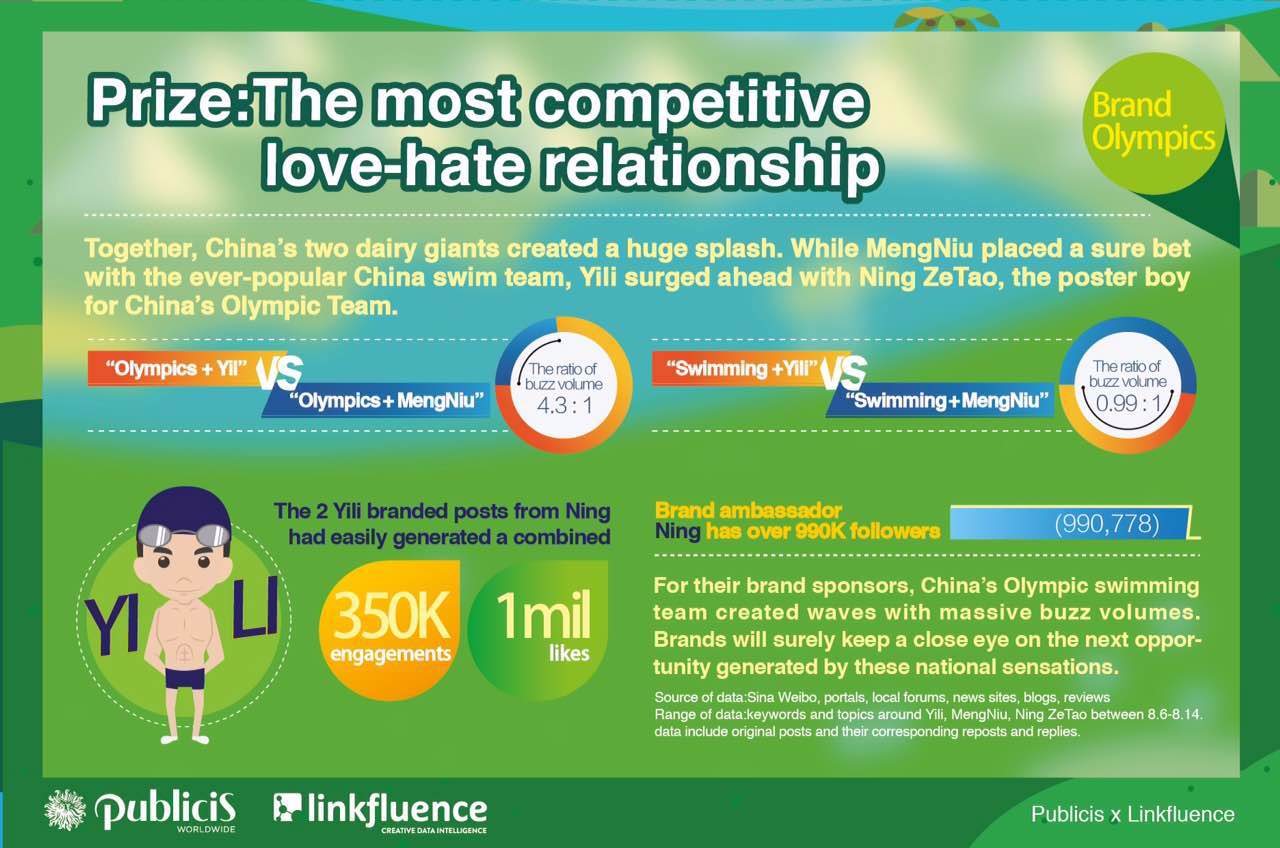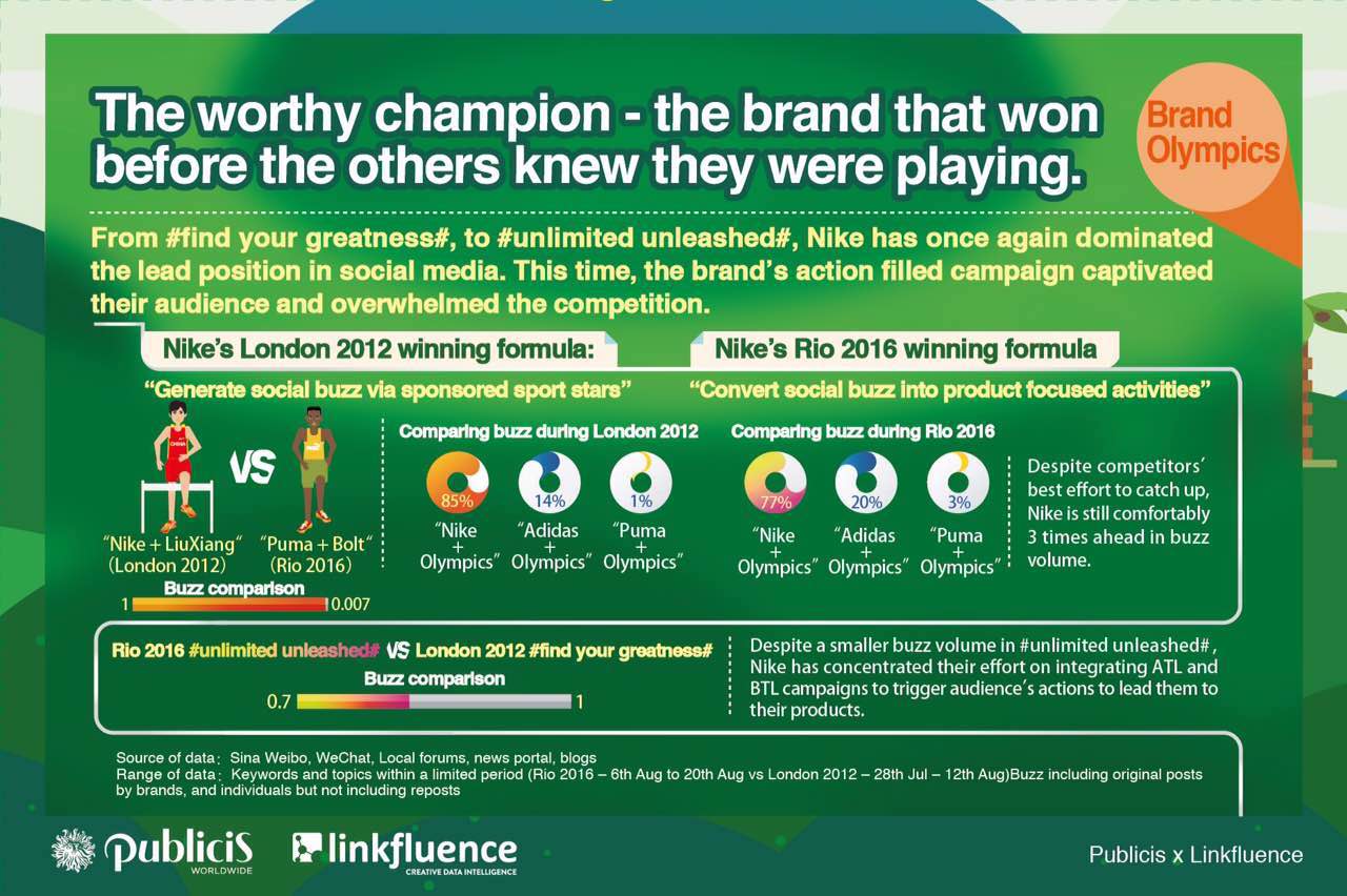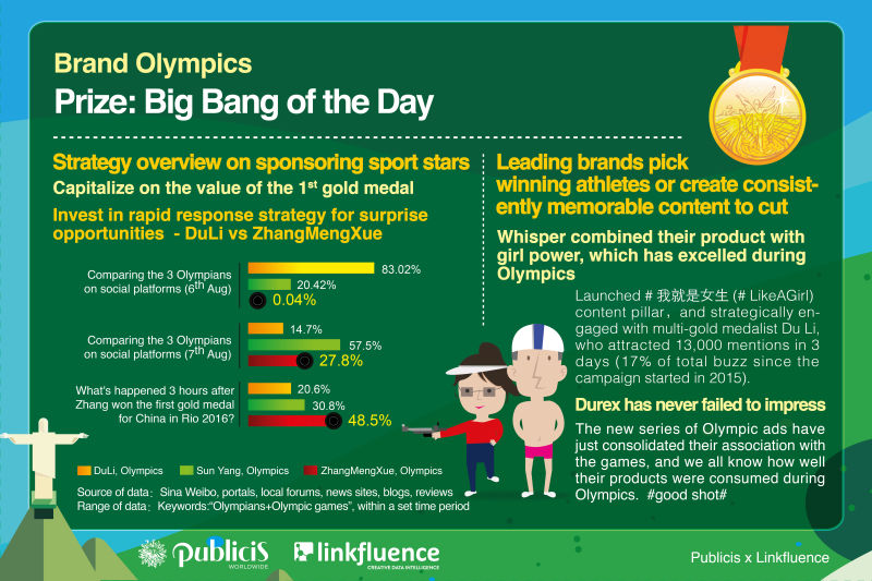 As the 2016 Rio Olympics continues, the real action for our industry happens away from the podium, where brands are investing big money hoping to make an impression on billions of viewers. As a nod to that reality, Publicis Worldwide Shanghai and Linkfluence have partnered to compile a list of the actual brand-side winners in China.