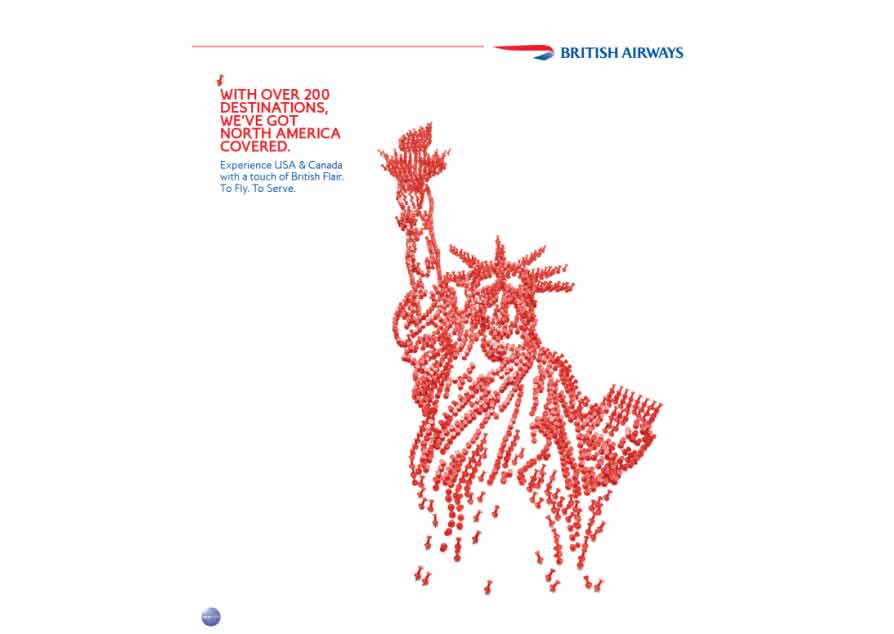 SINGAPORE - British Airways, through BBH Asia-Pacific, has launched a print campaign in India that uses pushpin art to create life-size images of iconic destinations in the US.