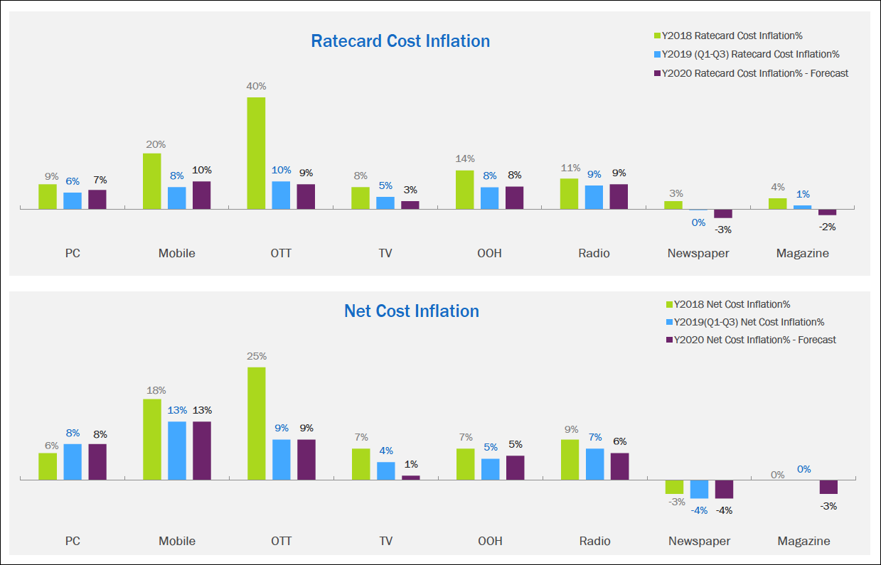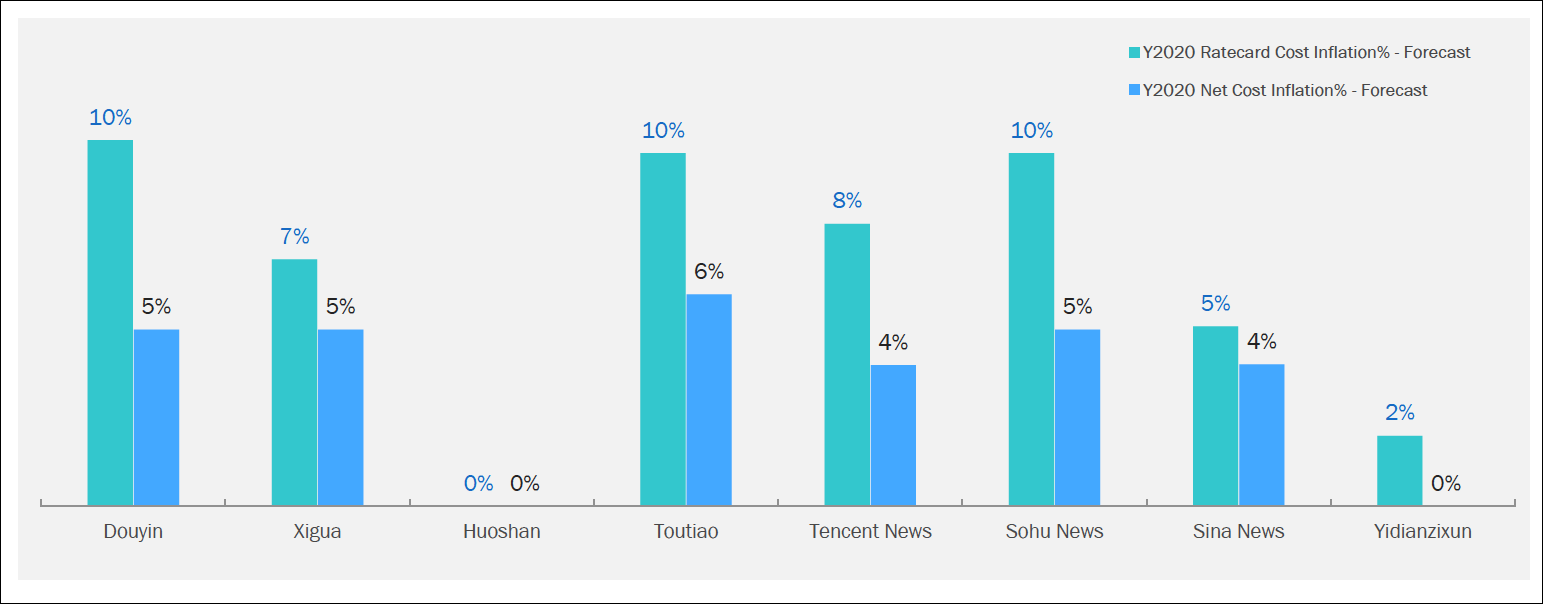 Short video apps and news feeds will see up to a 10% increase in media cost in 2020 as such platforms become "a staple" for advertisers, according to R3, which adds that digital media accounted for more than 60% of spend in 2019.