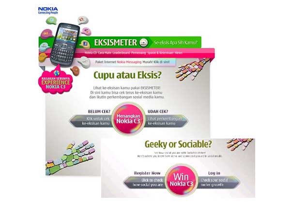 In partnership with Wunderman, Nokia has launched an online campaign for its C3 social networking model in Indonesia, which calculated participants' social media popularity with the phone's Eksismeter application.