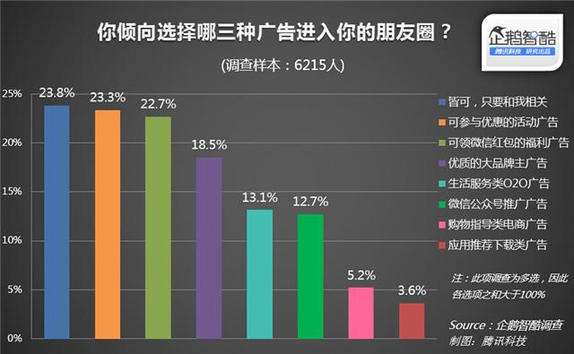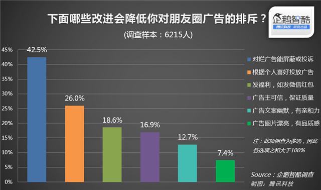 Two months after WeChat coyly took wraps off its in-feed ads on Moments, we review Tencent's data from a survey of 6,215 Chinese users about their sentiment towards news-feed ads in general, including those on QQ and Sina Weibo. The bad news is that many people complain about ads appearing too frequently. On the bright side, many of the complaints focus on ads for low-quality or counterfeit products. Chinese consumers did not object to advertising that they found relevant and engaging. Note: The text on the graphics provided is in Chinese. Our captions (underneath the images) explain the graphics to those who don't read Chinese.