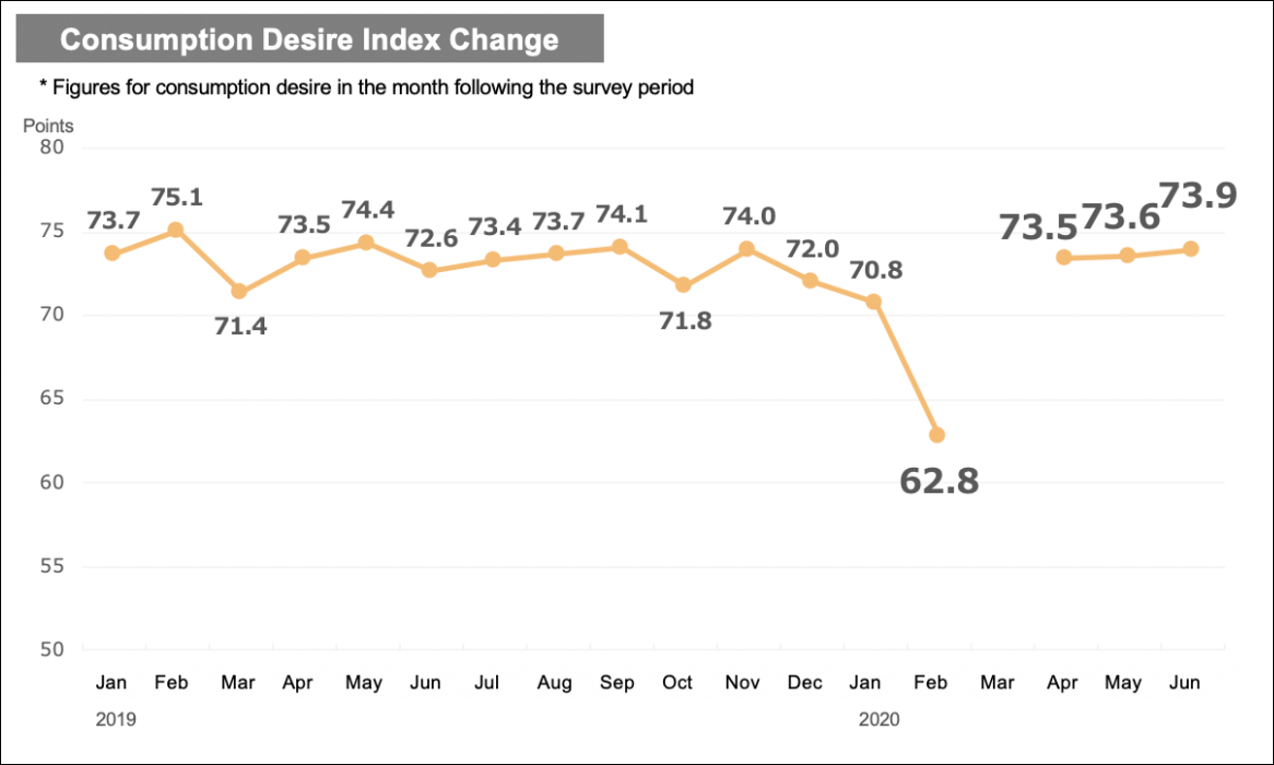 Since then, the index has made a full recovery to 2019 levels, with purchasing desire levels hitting 73.5 in April, 73.6 in May and 73.9 in June, the highest reading in a year.