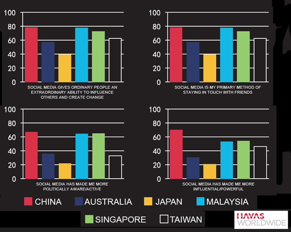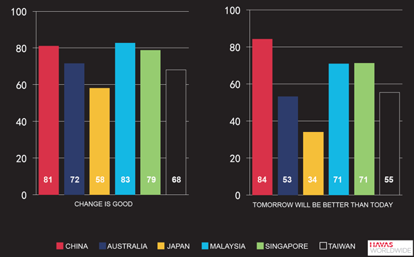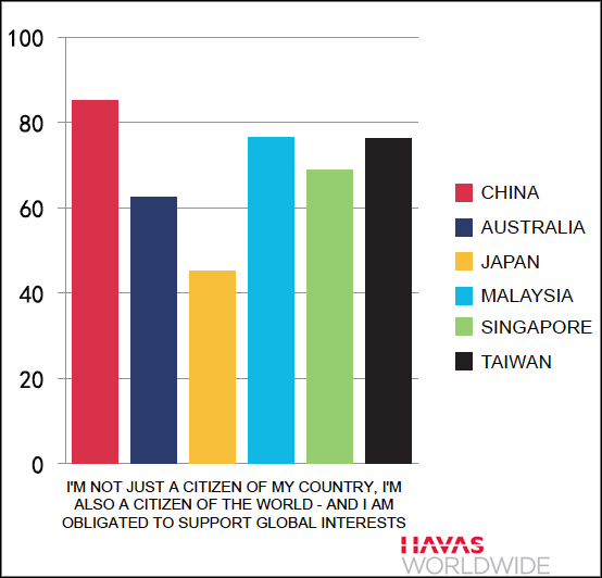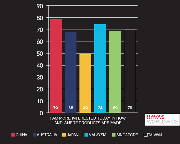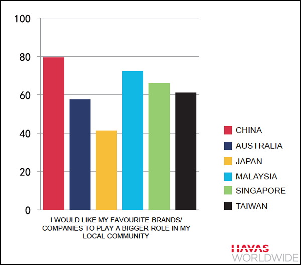 Compared with consumers in other countries in the region, consumers in China are more concerned about the social and environmental impact of the things they buy and more likely to believe that social media has given them more power to effect change. They're also more likely to believe companies should play a bigger role in their local communities and more llkely to hold the conviction that tomorrow will be a better day, according to a recent study by Havas Worldwide.