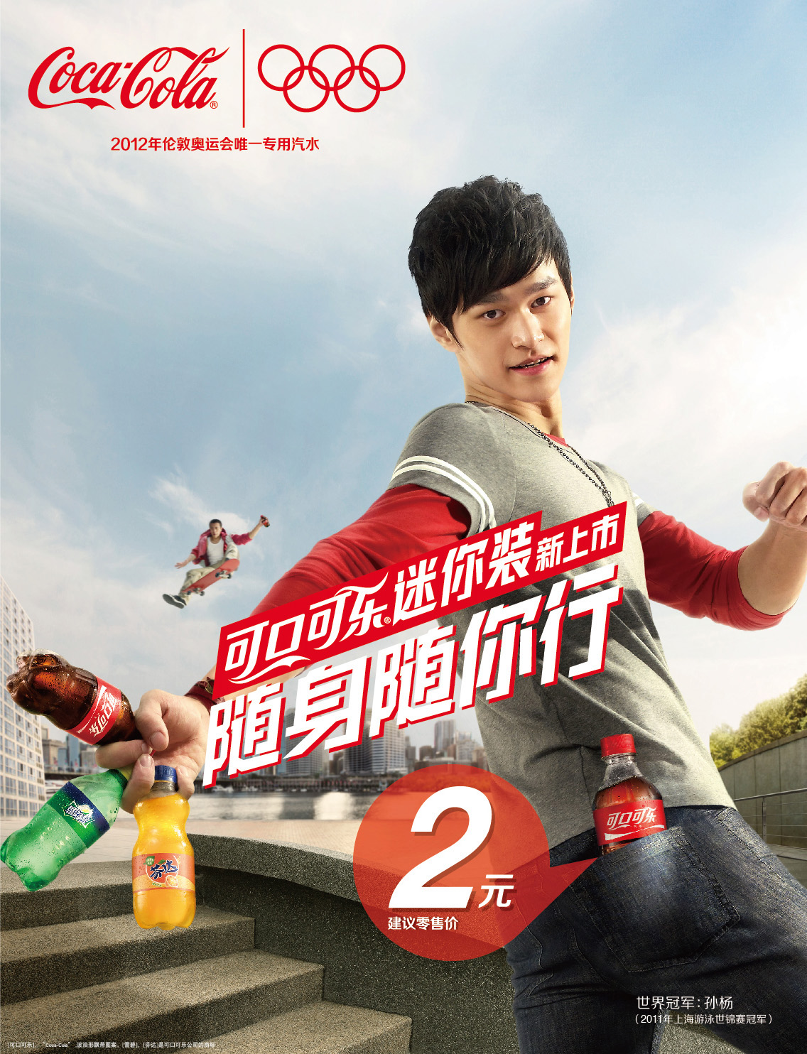 At the heart of the 'Journey' campaign is a 30-second TVC, starring distance freestyle swimmer Sun Yang. The commercial follows Sun as he journeys across China to arrive in London for the Olympic Games. Sun carries the mini-sized bottles wherever he goes, highlighting their portability.