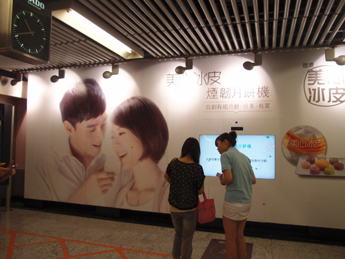 MX Snowy mooncake targets young consumers with its key message focus on “stickiness” (煙韌), “Fun” and “Sharing”. The “Stickiness” idea plays on a double meaning of intimacy as well as the chewy nature of new crust.<br><br>As part of the integrated campaign by Maxus Hong Kong, an installation in the Causeway Bay MTR station features an interactive, motion-sensing video panel that allows users to make virtual snowy mooncakes decorated with their faces. The system dispenses a cash voucher for every mooncake created and shared.