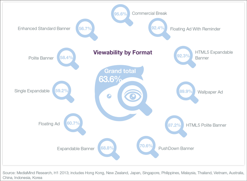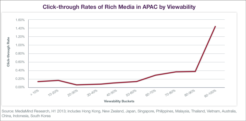DG MediaMind analysed approximately 16.1 billion rich-media impressions served in Asia-Pacific during the first half of 2013, and found that the average viewable rate for rich media in the Asia Pacific region was 63.6 per cent. The company also confirmed the correlation between campaigns with higher aggregate viewable rates and higher engagement metrics.