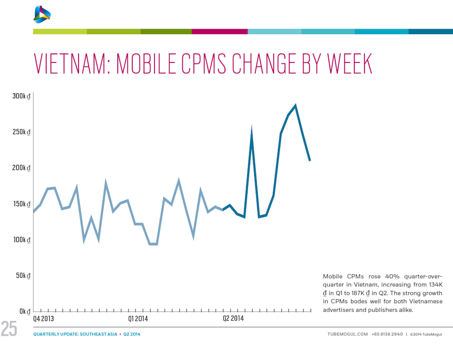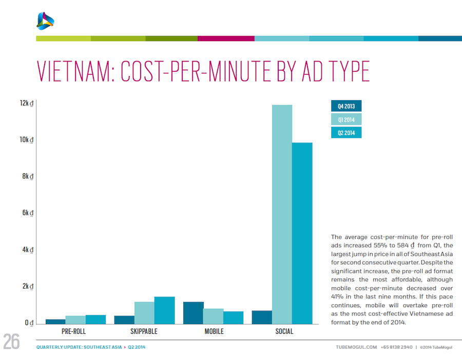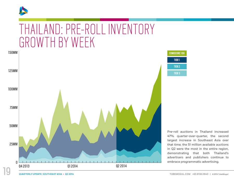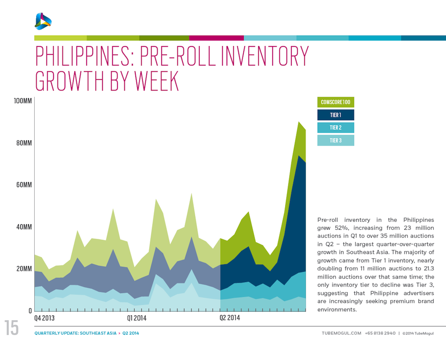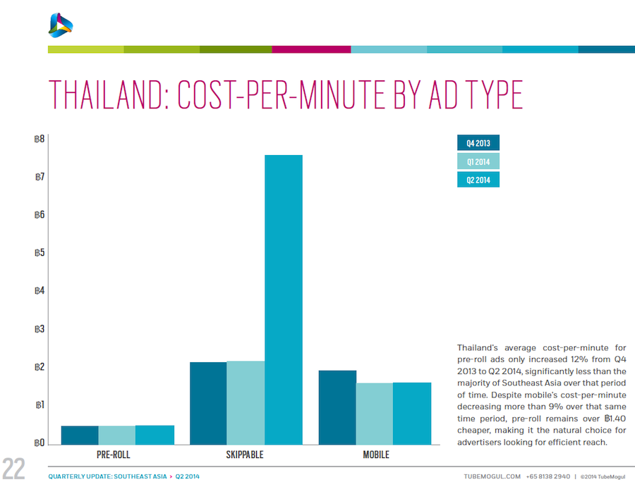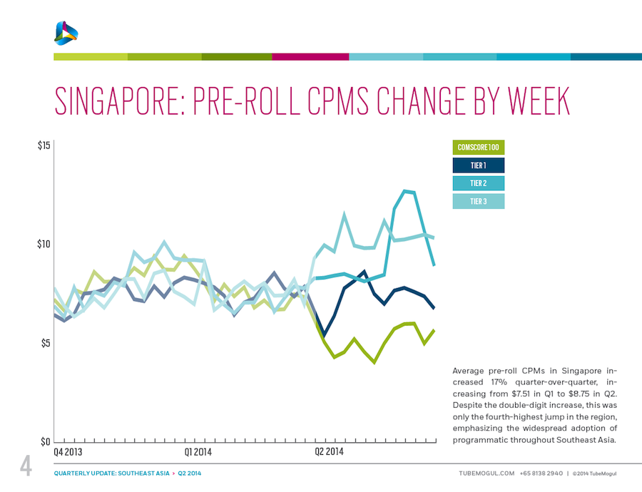 These data, courtesy of TubeMogul, detail trends in inventory, CPM and cost per minute for video advertising (both desktop and mobile) in six Southeast Asia nations: Singapore, Indonesia, Malaysia, Philippines, Thailand and Vietnam. The data come from digital video campaigns run on the TubeMogul Platform in Q4 of 2013 and Q1 and Q2 of 2014, spanning millions of mobile and pre-roll video ad views. Please see the related-article link at the bottom of the page for additional insight from the company.
