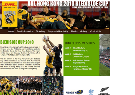 HONG KONG - The Hong Kong Rugby Football Union (HKRFU) has announced the appointment of DHL as title sponsor for the upcoming Hong Kong 2010 Bledisloe Cup, which kicks off at the Hong Kong Stadium on 30 October.