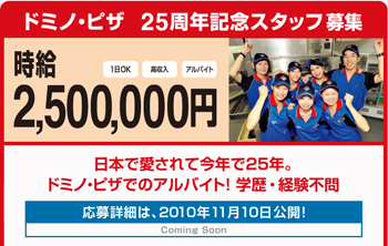 As part of a campaign celebrating its 25th anniversary, Domino's Pizza in Japan is looking for an employee without the requirement of previous experience or education. The pizza giant will pay the winning applicant 2.5 million Yen for an hour of work in December.