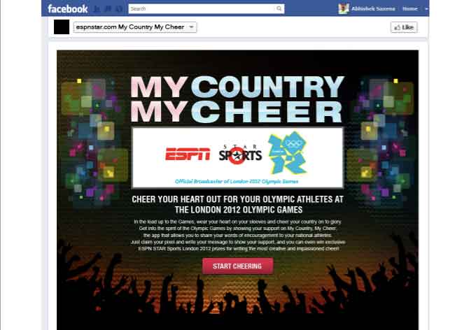The 'My country, my cheer' Facebook application, available in Singapore, Malaysia and India, allows visitors to post words of encouragement in support of Olympic athletes.