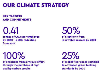 According to WPP’s most recent (2018) sustainability report, the holding company has already committed to the following goals listed below.