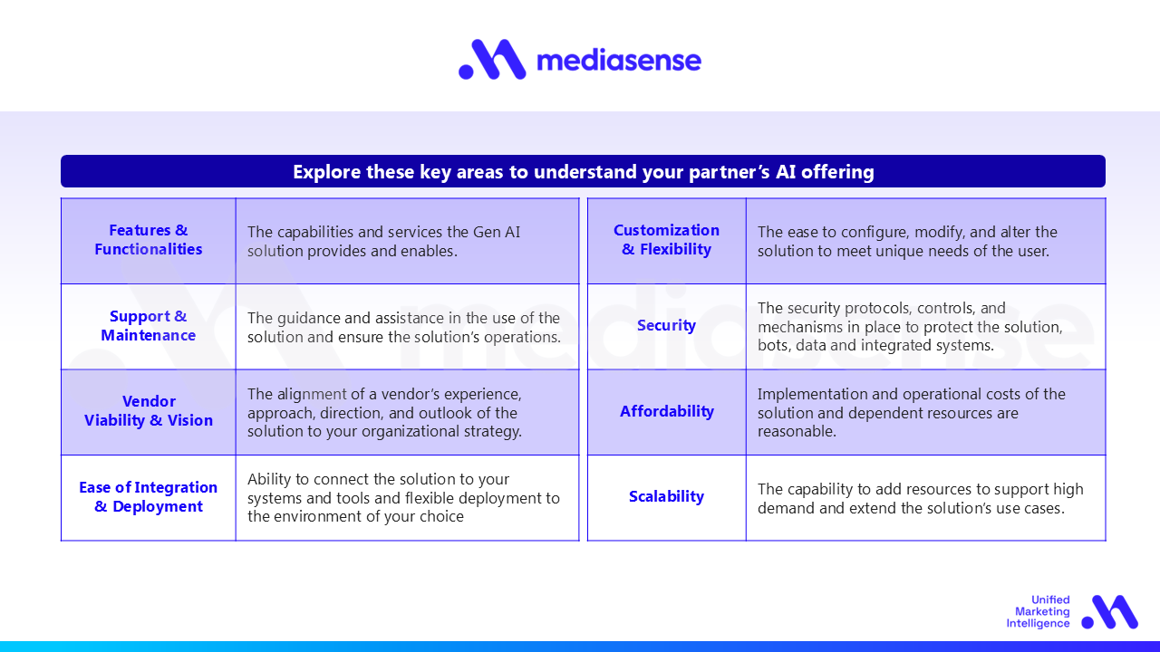 In his presentation, Jayaraj pointed to the integral role of procurement in ensuring gen AI adoption has the right features, support, ease of integration, flexibility, security and scalability to really make the investments and applications work for brand marketers. Whereas marketing teams may want a quick solution, procurement can act in the best long-term interests of the team and wider company to make the right investments.