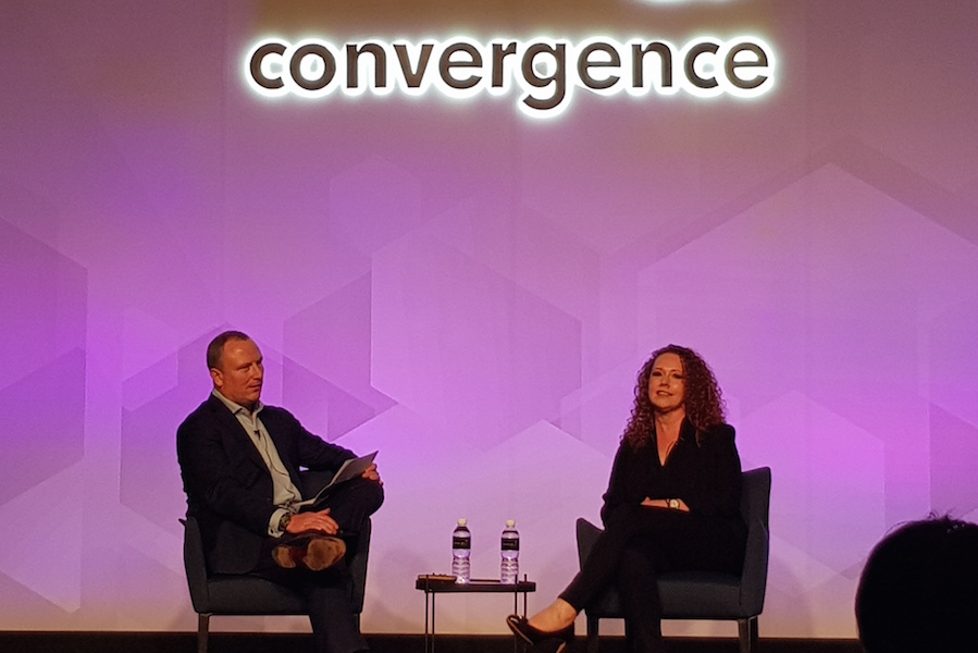 Leigh Terry & Lisa Ronson speaking on the Convergence stage at Innovfest Unbound 2018 in Singapore.