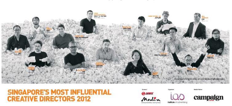 Rail operator SMRT organised an evening get-together and drinks with the CD of the Year Award nominees for Hall of Fame 2012. Posters of the 14 most influential creative directors in the country have been given out the nominees. Earlier, the creative directors were put ‘in’ a set filled with recycled papers for the photoshooting of the poster. They also did a ‘DrawSomeThink’ session for SMRT trade publicity along the theme of 'Superheroes'.