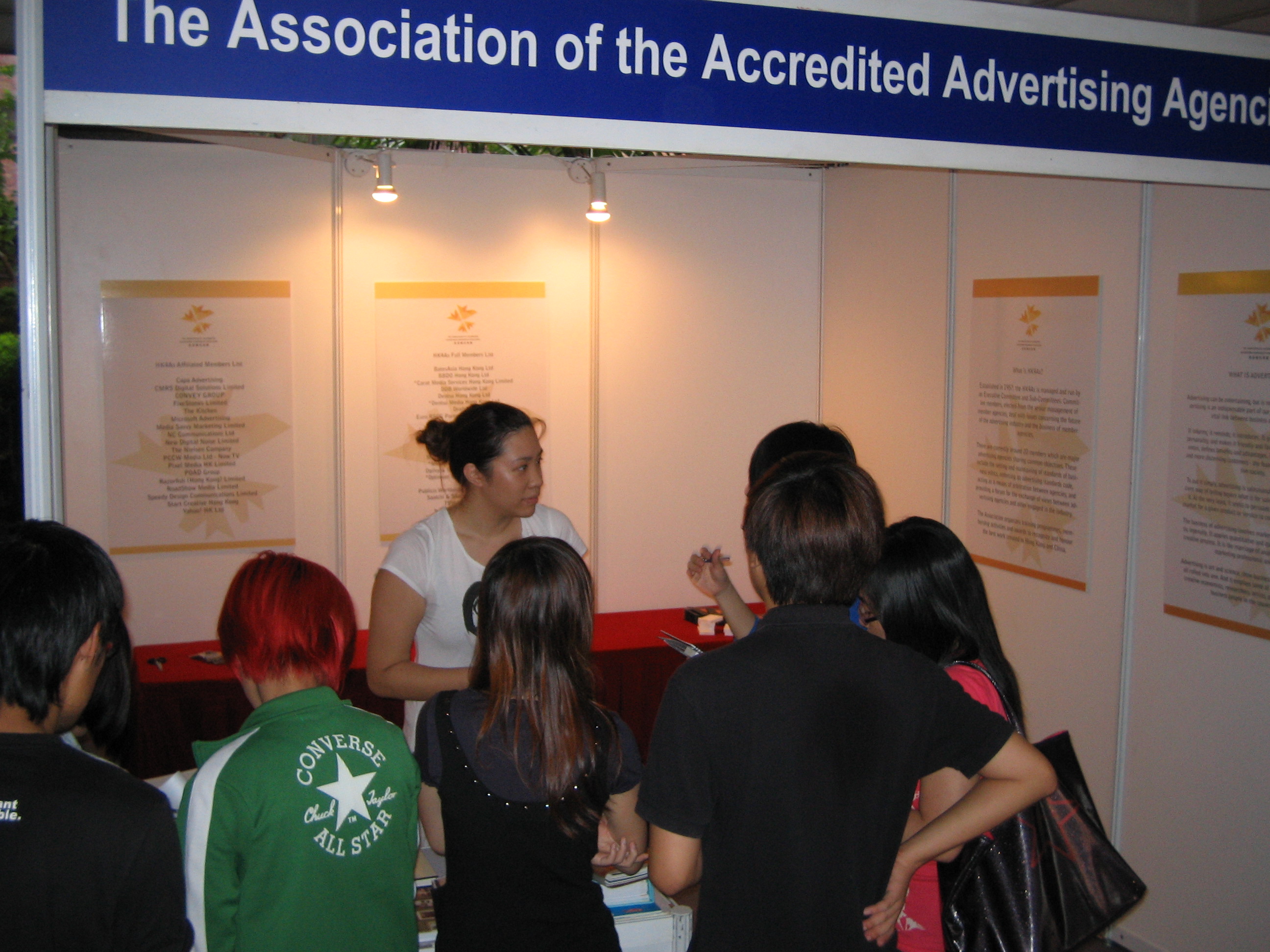 The Association of Accredited Advertising Agencies of Hong Kong (HK4As) hosted an 'Agency Showcase' event to drive awareness of the industry among young talents. Held on 29 September 2010 at The Hong Kong Polytechnic University, the event included exhibition booths by ad agencies and seminars hosted by industry veterans. Karen Lee, regional network director of Publicis Hong Kong