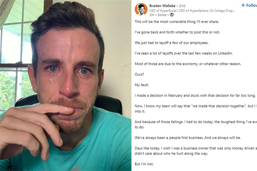 In contrast to calls for leaders to be vulnerable, marketing agency boss Braden Wallake's tearful selfie on LinkedIn was met with criticism and he was dubbed the "crying CEO".