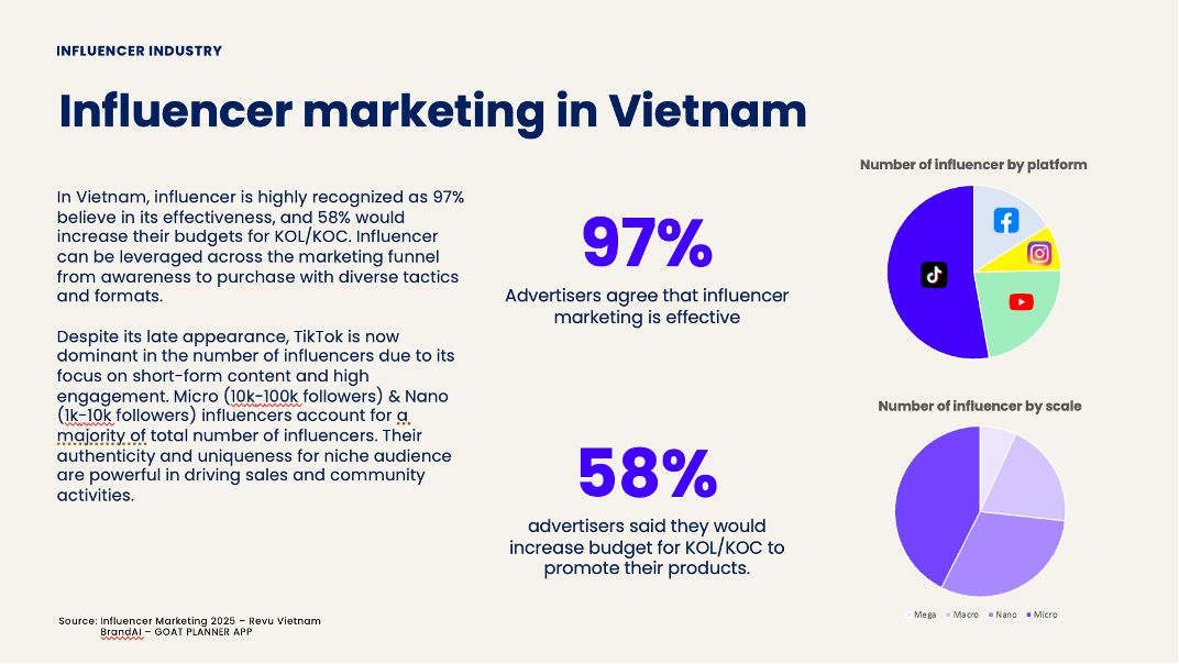 Another key driver is Vietnamese consumers’ deep trust in peer recommendations. Traditional advertising often struggles to gain credibility, while influencers, especially micro and nano influencers, offer something far more compelling: authenticity.