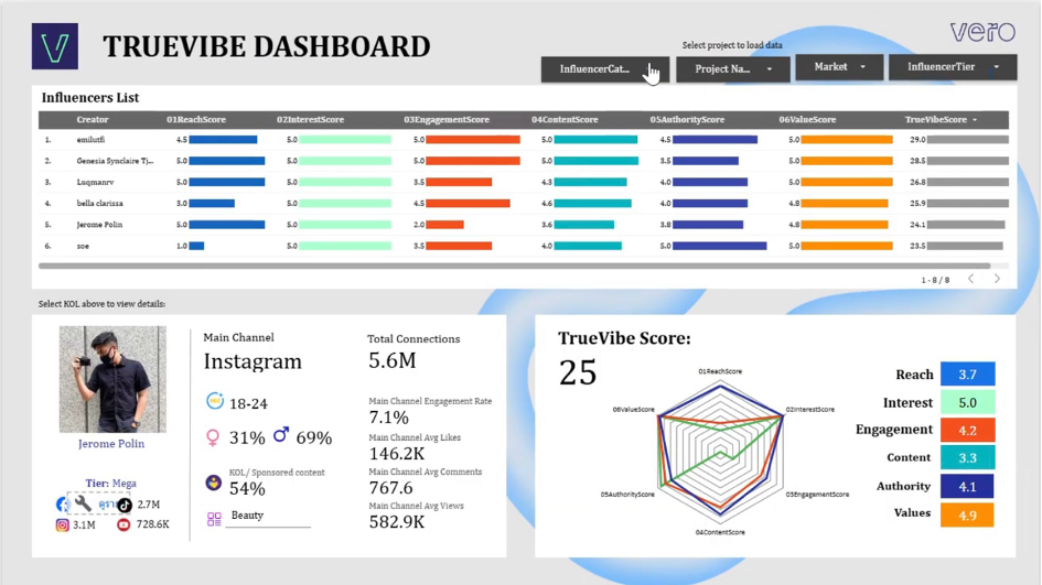 TrueVibe provides precise data sets that explain why a particular influencer was selected for a campaign.