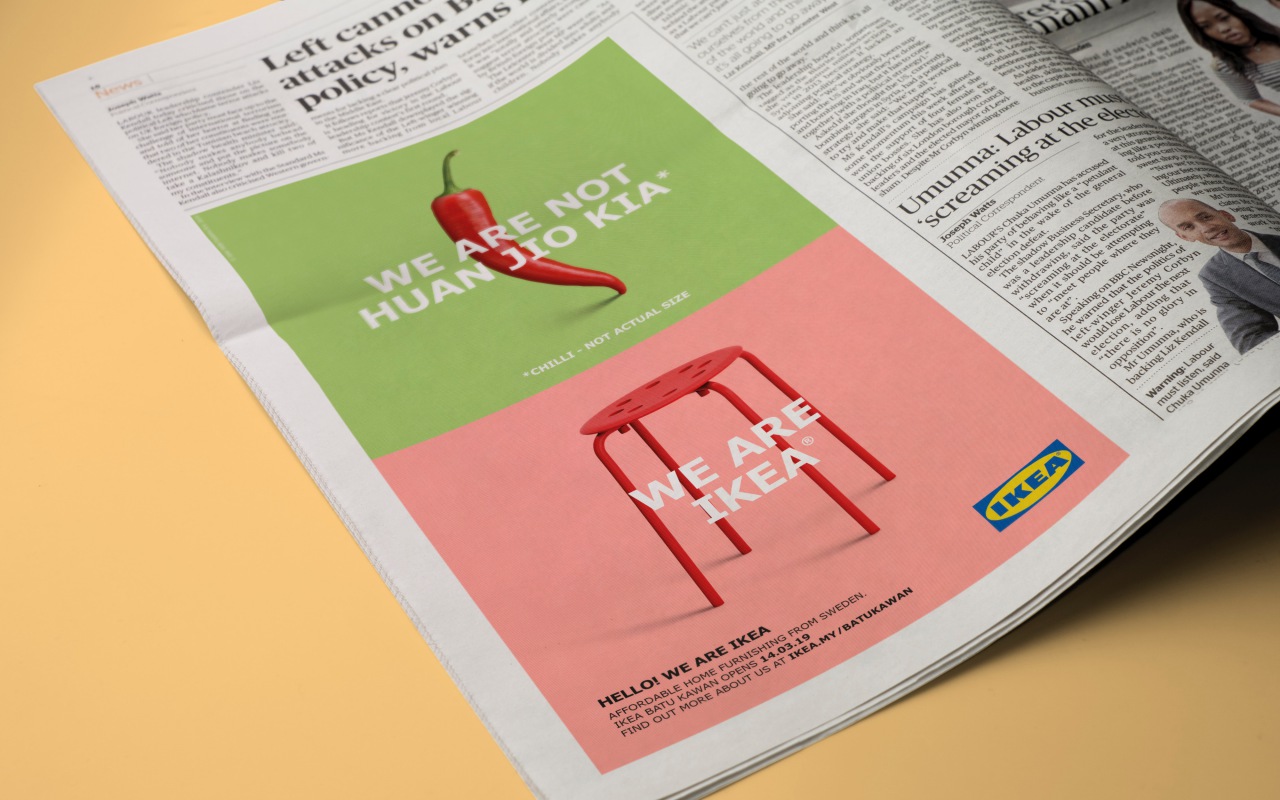 Ad Nut feels fairly confident that the people of Penang actually know what Ikea is. But wordplay is always welcome in Ad Nut's book, and cross-language wordplay meant to endear a brand to a new community even more so. So Ad Nut approves of this campaign by BBH Singapore for the Swedish furniture giant's opening in Penang on 14 March.