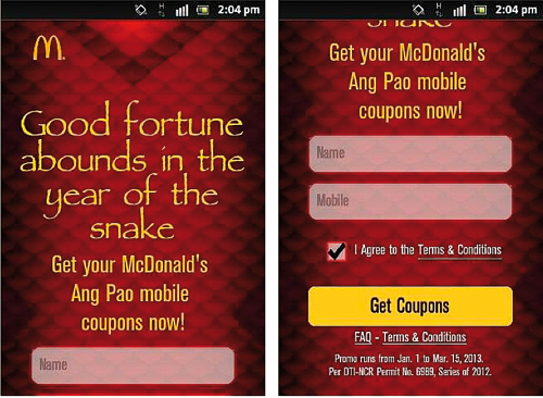 The result was 28,334 consumers using the mobile coupons, 111,000 coupons redeemed and PHP8.3 million (US$190,000) revenue from coupon-aided purchases. A customer database was built from the consumer registrations, and McDonald’s sent out its first promotional SMS to them in May.