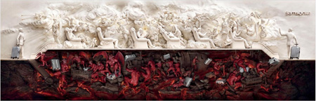 The campaign involved print ad and outdoor executions for the Samsonite Cosmolite suitcase. The concept highlights the ultra-durability of the suitcase through a sharp contrast between the heavenly environment of first class and the 'hellish' scene below where the suitcase is being handled.