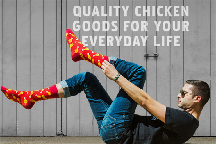 KFC and Wieden & Kennedy Portland seem to have decided that their customers desperately need to be able to stare the colonel in the face while in bed. Also missing from our lives has been a Sex In the City-style necklace with "finger lickin good" around to accessorise with our Colonel Suit T-shirts. And we haven't even mentioned the chicken drumstick socks yet (above).