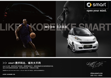 BEIJING - Mercedes-Benz is rolling out a nationwide ad campaign for its Smart Car, starring brand ambassador Kobe Bryant.