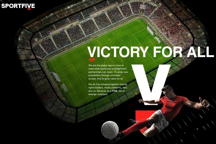 The company styles the name in all caps with an underlined 'V', which it associates on its website (shown above) with 'Victory for all'. The 'five' in the name refers to the company's five core stakeholder groups: brands, rights-holders, media platforms, fans and the company's employees.