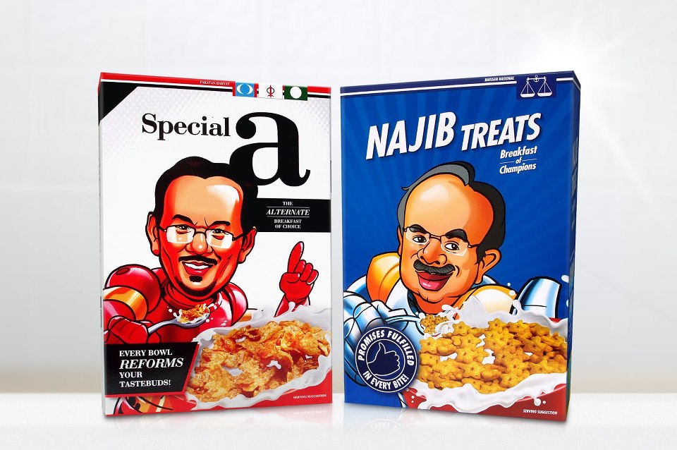 MALAYSIA - Boutique independent agency BW Creative has designed limited edition 'Election Cereals' in conjunction with the nation's 13th General Elections. Voters can choose between Special A (for opposition party Pakatan Rakyat leader Anwar Ibrahim) and Najib Treats (for incumbent prime minister and leader of ruling coalition Barisan Nasional, Najib Razak).