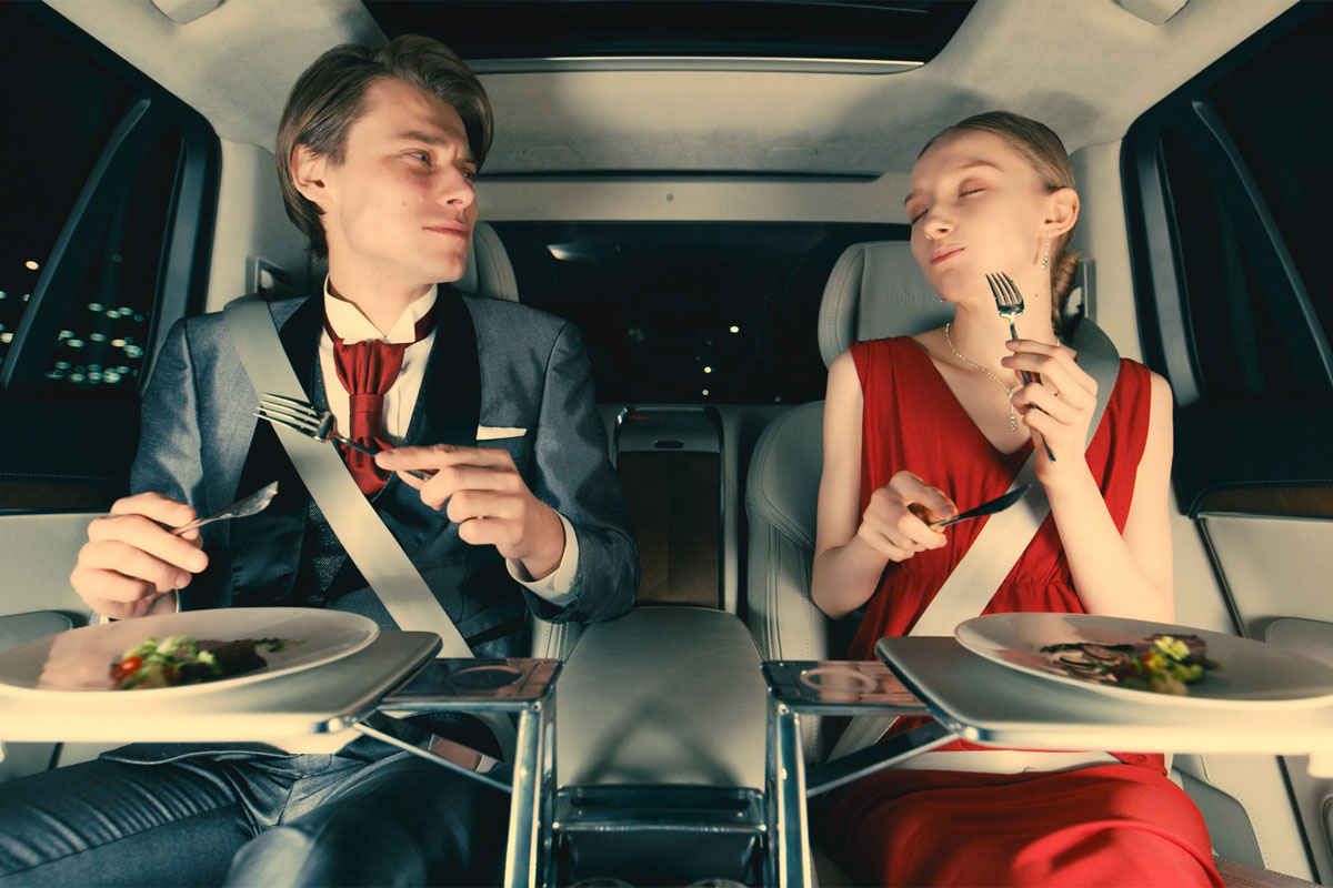The stunt promotes the Volvo XC90 Excellence, which the campaign website refers to as the "restaurant". It has a built-in champagne cooler, a sound system akin to an orchestra and many other features that the site describes in lavish terms.