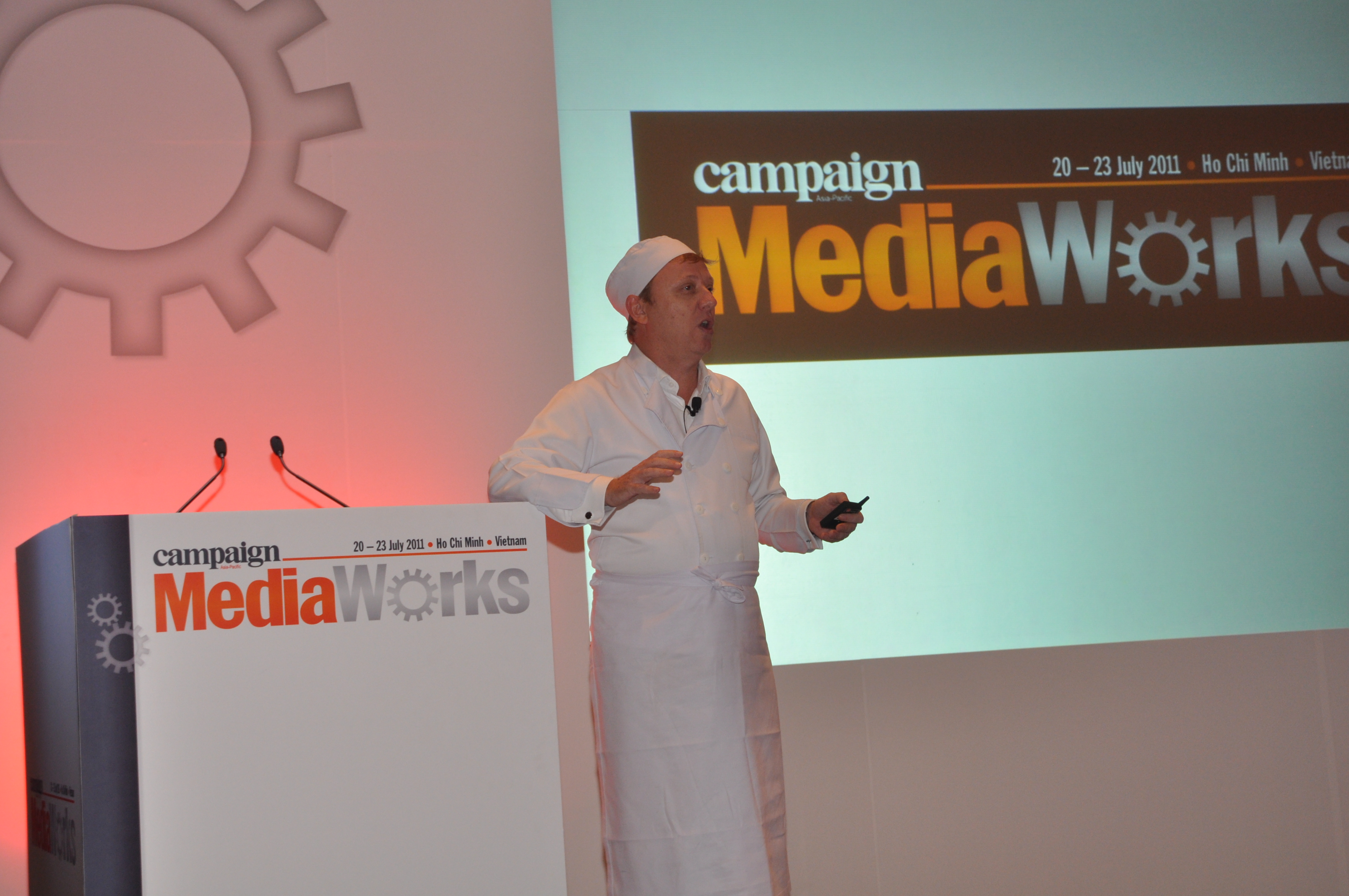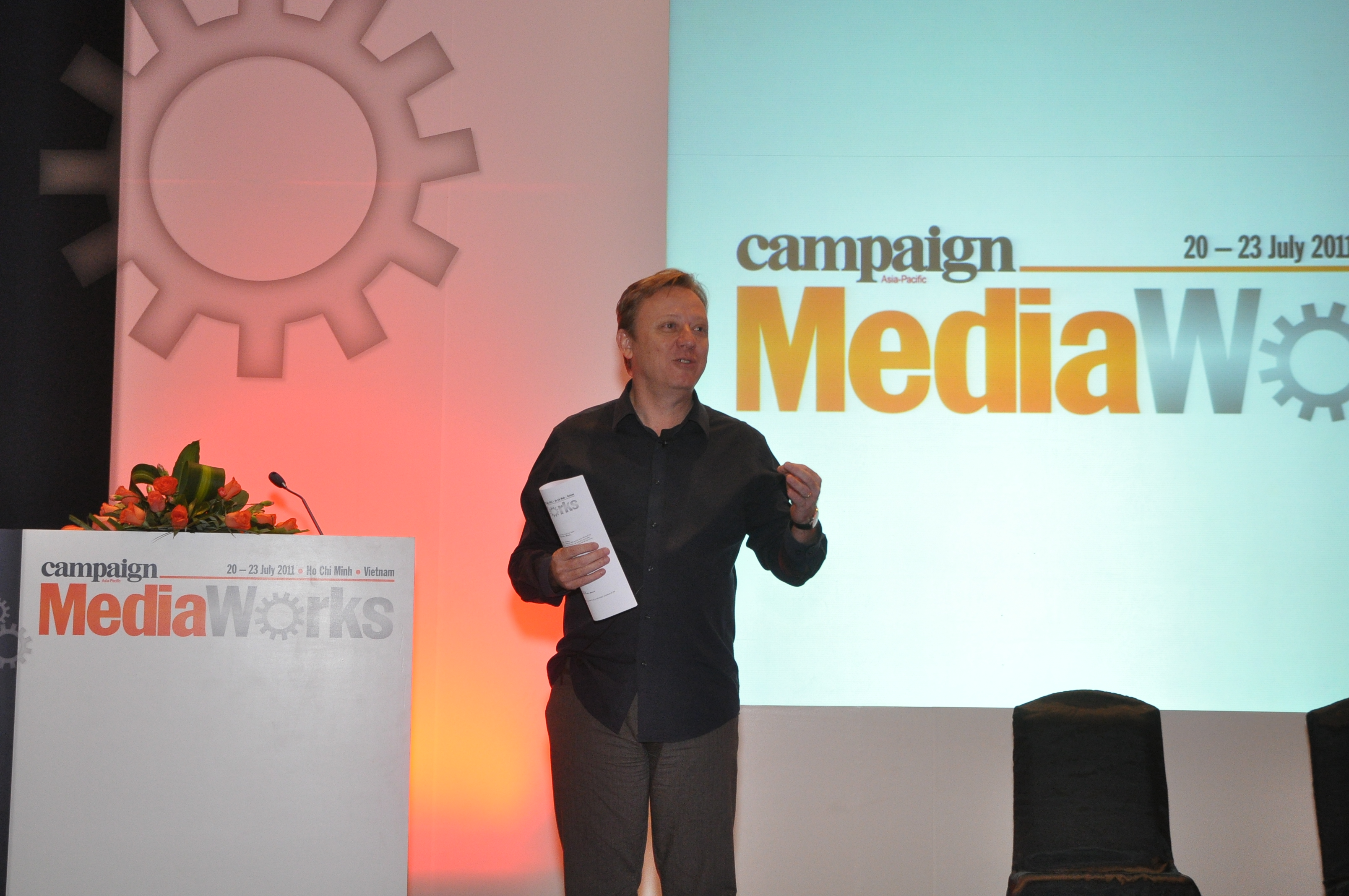 MediaWorks "client", Brendan Inns of Shangri-La Hotels and Resorts, briefs delegates on the task ahead