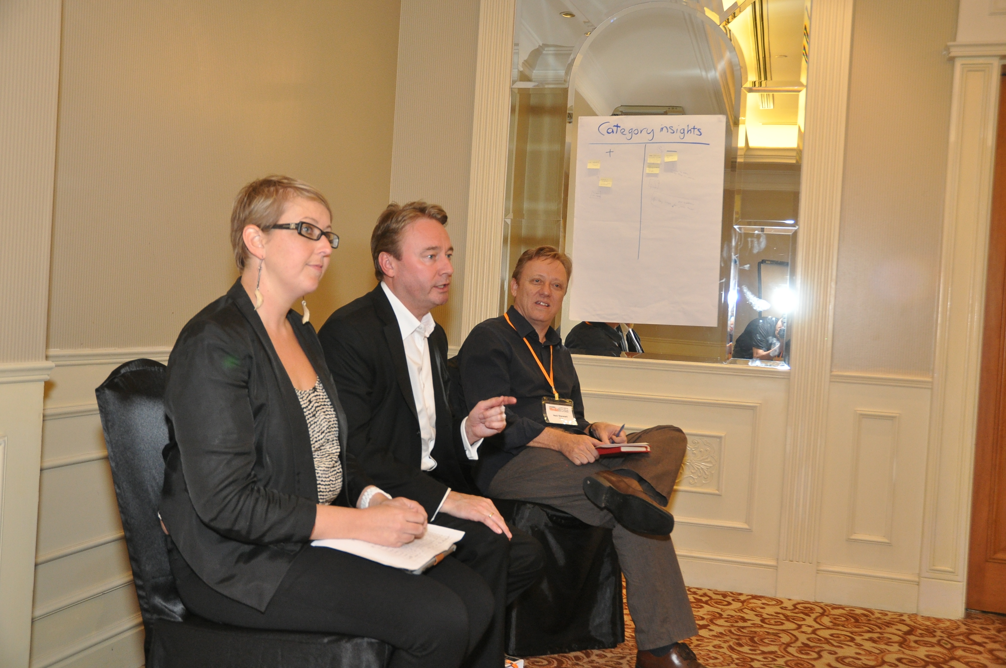 The judging panel: Angela Jones of Maxus, Brendan Inns, of Shangri-la Hotels and Resorts, and chairman Neil Stewart of Maxus.