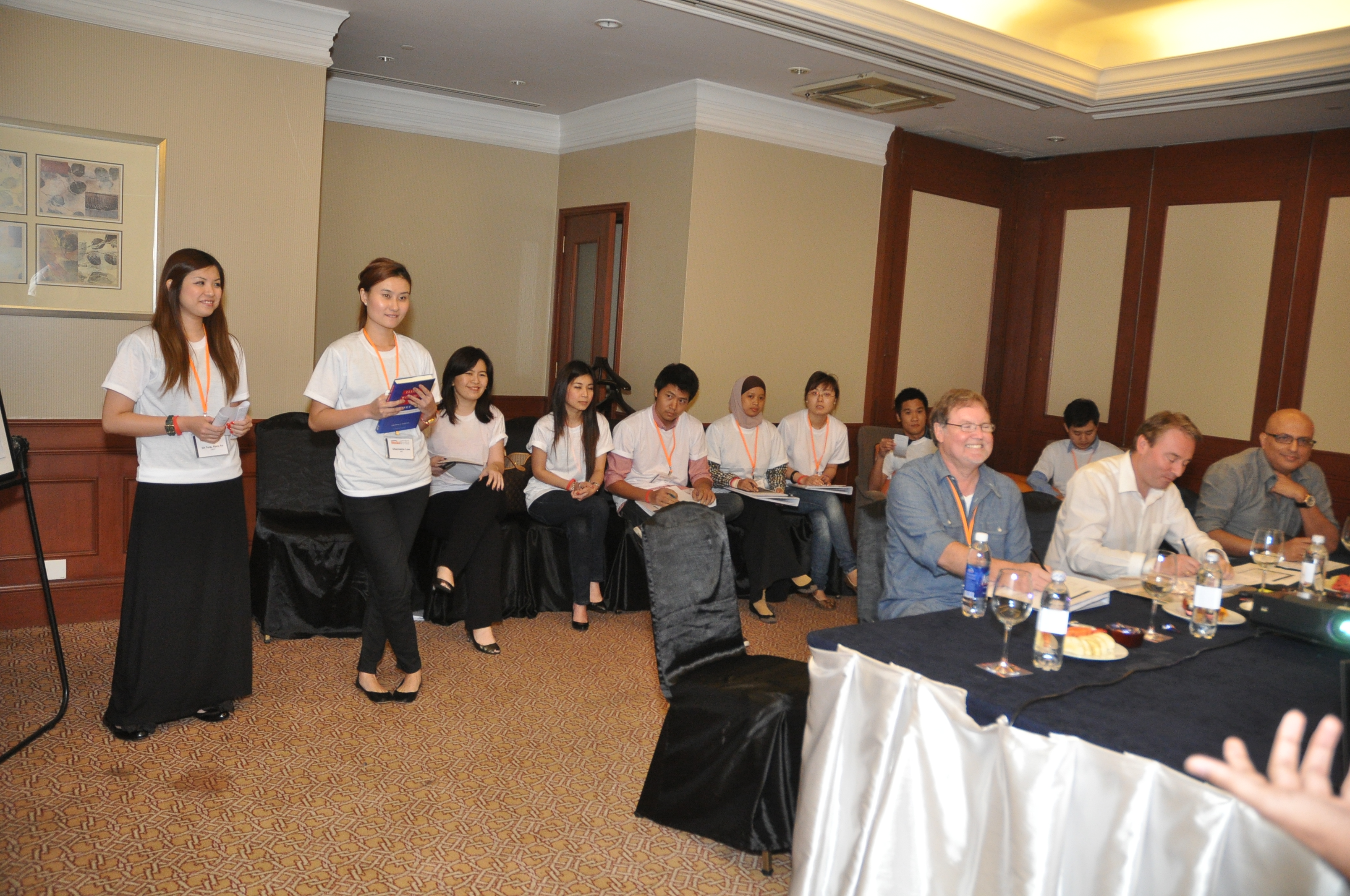 The orange team have time for questions with the clients