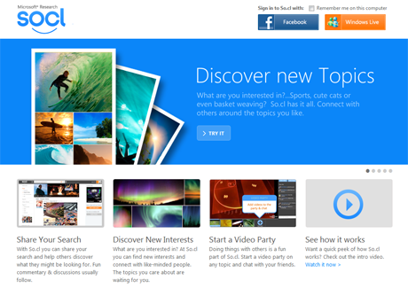 GLOBAL - According to Microsoft, its social search paltform So.cl (pronounced "social") isn't so much a product launch as an experimental search project "made accessible" to the public.