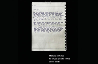 SINGAPORE - The National Council Against Drug Abuse (NCADA) has launched a JWT-produced outdoor drive to warn youths in Singapore of the dire consequences of glue inhalation.