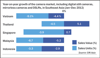 There were about three major players in the MILC segment in 2011, but now up to seven manufacturers are focusing on it, according to GfK Asia. “Consumers who already own a DSLR, or are looking to upgrade from traditional point-and-shoot cameras might consider purchasing a mirrorless camera with a larger sensor that allows them to enjoy better mobility,” says Gerard Tan, account director for digital technology at GfK Asia.