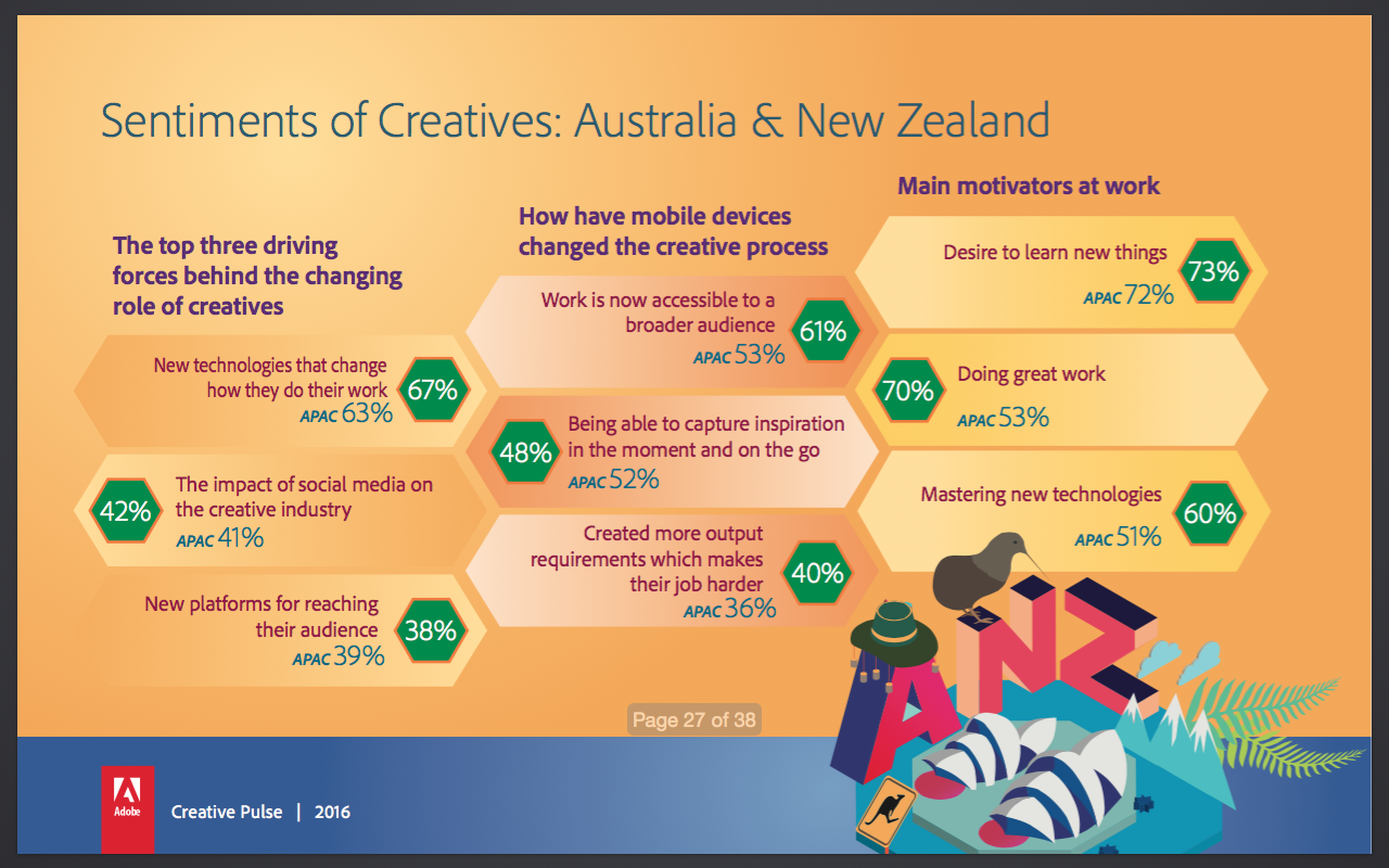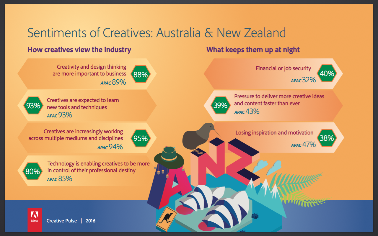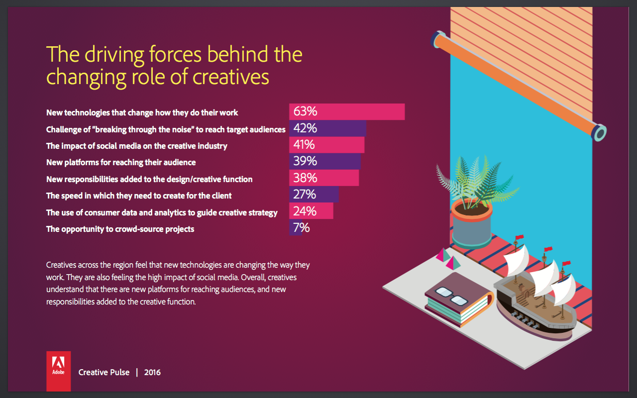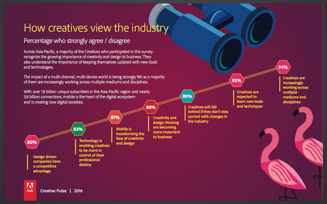 That was the finding of Adobe’s 2016 Creative Pulse survey of more than 1,700 creatives in the region; the boost was attributed to the rise of design-led thinking and the incorporation of design approaches into business and strategic problem solving.