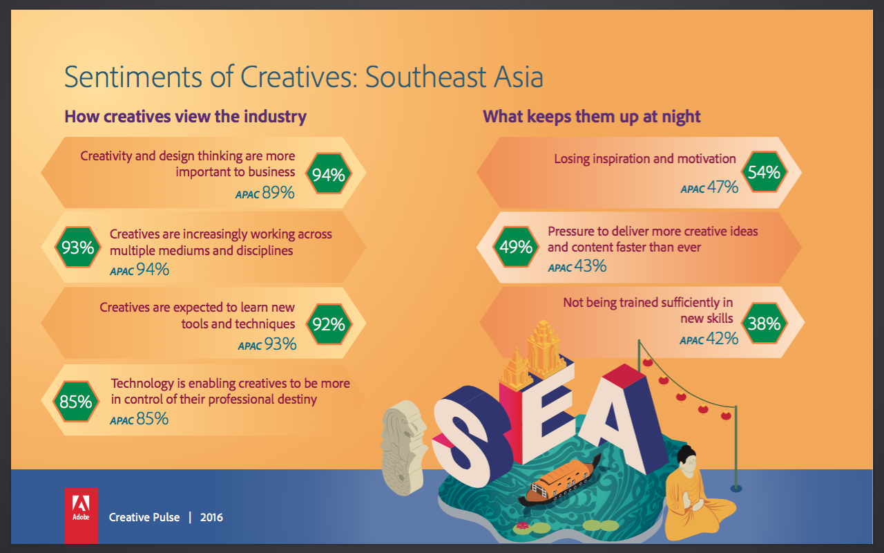 Results in Southeast Asia echoed the APAC findings – out of the 220 creatives surveyed, 94 percent felt that businesses are beginning to place more importance on creativity and design thinking.