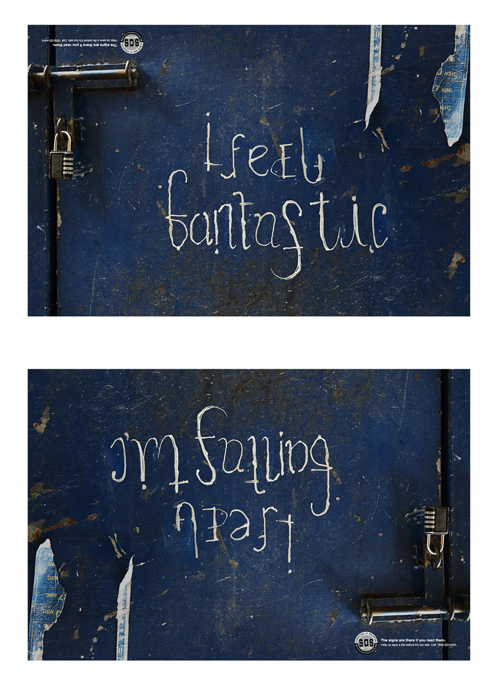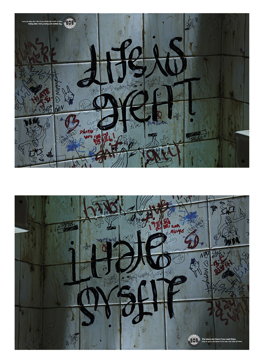 The Samaritans of Singapore launched a 'Hidden pain' campaign in April 2013 as part of its nationwide suicide prevention outreach and education programme for the year. The ongoing project, created by Publicis Singapore, is based on a simple human observation: Pain isn't always obvious, but the signs are there if you read them. The print campaign will also appear on posters, engagement tools for upcoming suicide awareness exhibitions and school giveaways over the next few months.