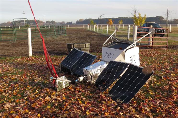 Nancy Mumby-Welke heard a loud crash outside her farmland home in Gratiot County, Michigan, at the weekend and posted a photo of the payload, which had a Samsung logo.
