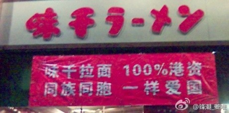 Ajisen has saved some of its shopfront windows in this manner, by insisting the brand is owned by Hong Kong businessmen. And of course, people still need to eat so that they can smash more windows later.