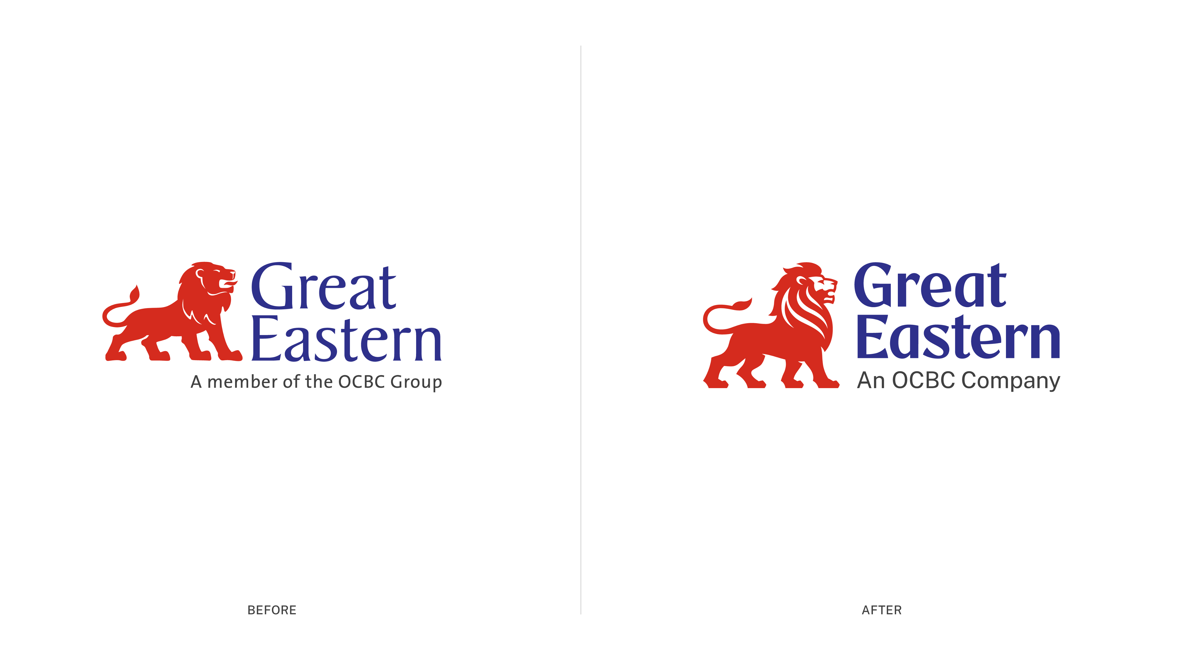 The revamped logo (see below) features a more dynamic lion vector, with its mane and posture sharpened to convey courage, pride, and strength. The refresh introduces a graphic, stylised take on the lion alongside an updated typography that bolds Great Eastern’s longstanding serif font for a fresh and modern visual language. The tagline is precise, edited for clarity to ‘An OCBC Company’.
